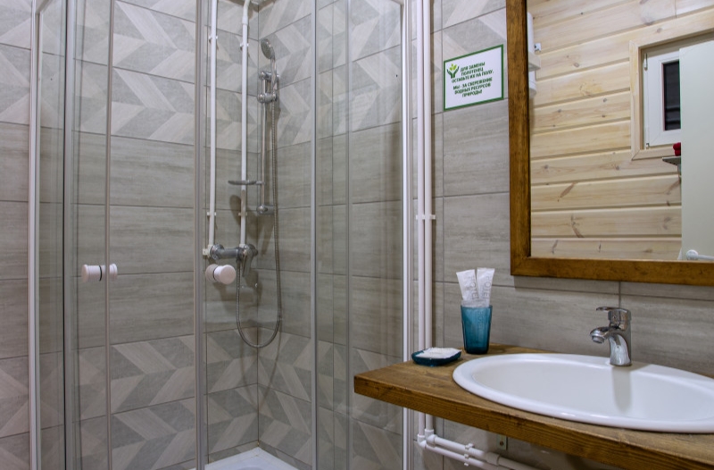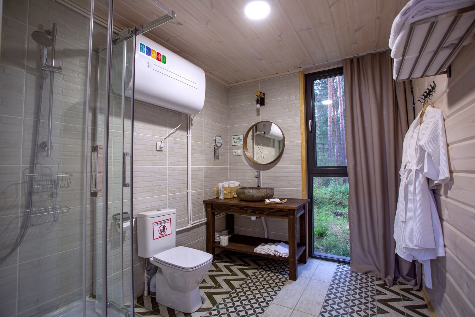 - Санузел: с душевой кабиной, туалетные принадлежности, халат