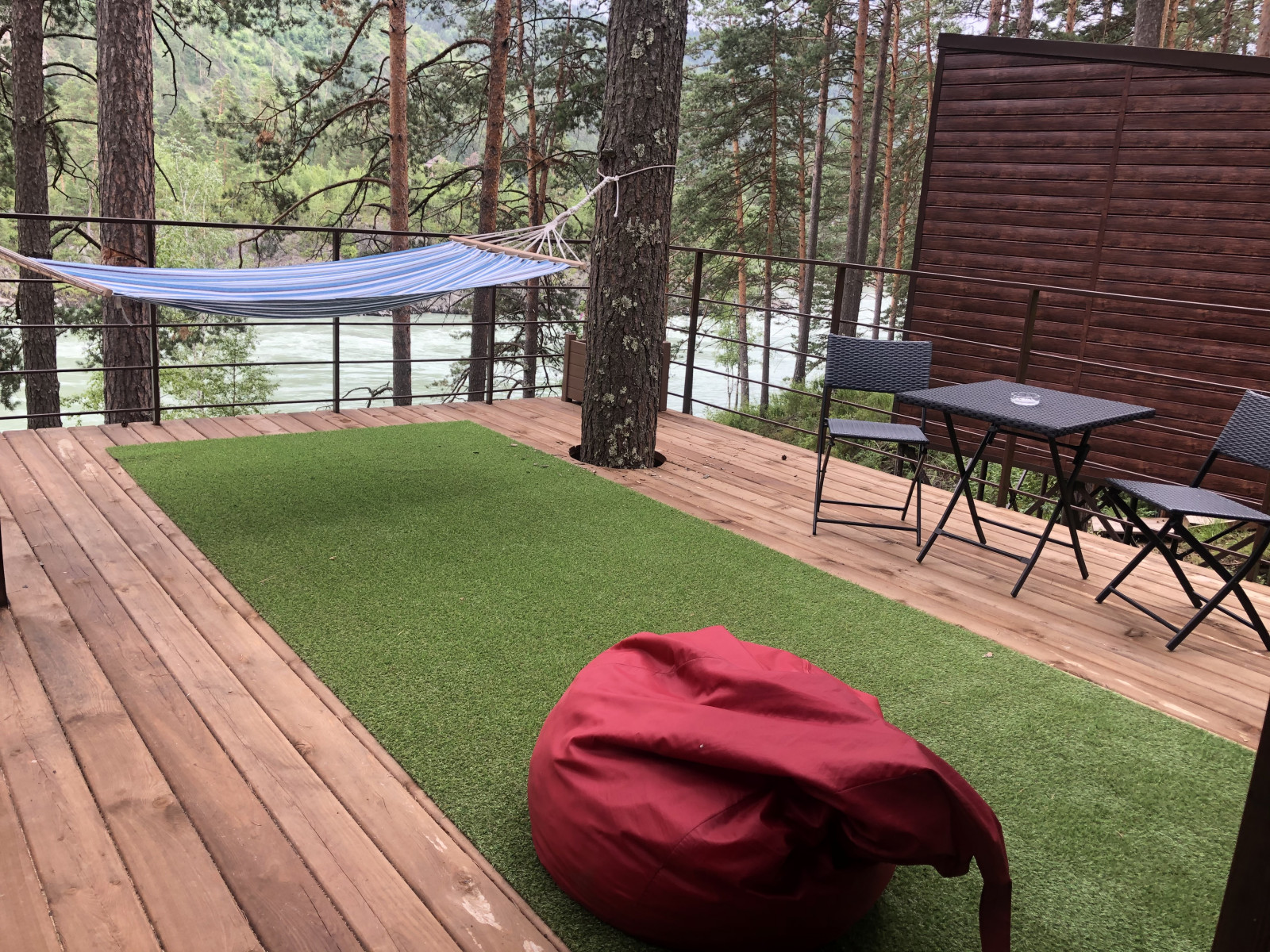 | Бунгало 2-местный (вид на реку) | 26 кв.м. | 2 чел. | Балкон (с мебелью), Мебель (диван раскладной, зеркало, кровать двуспальная, прикроватные тумбочки, с... | |