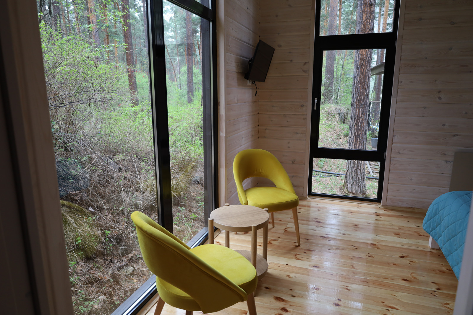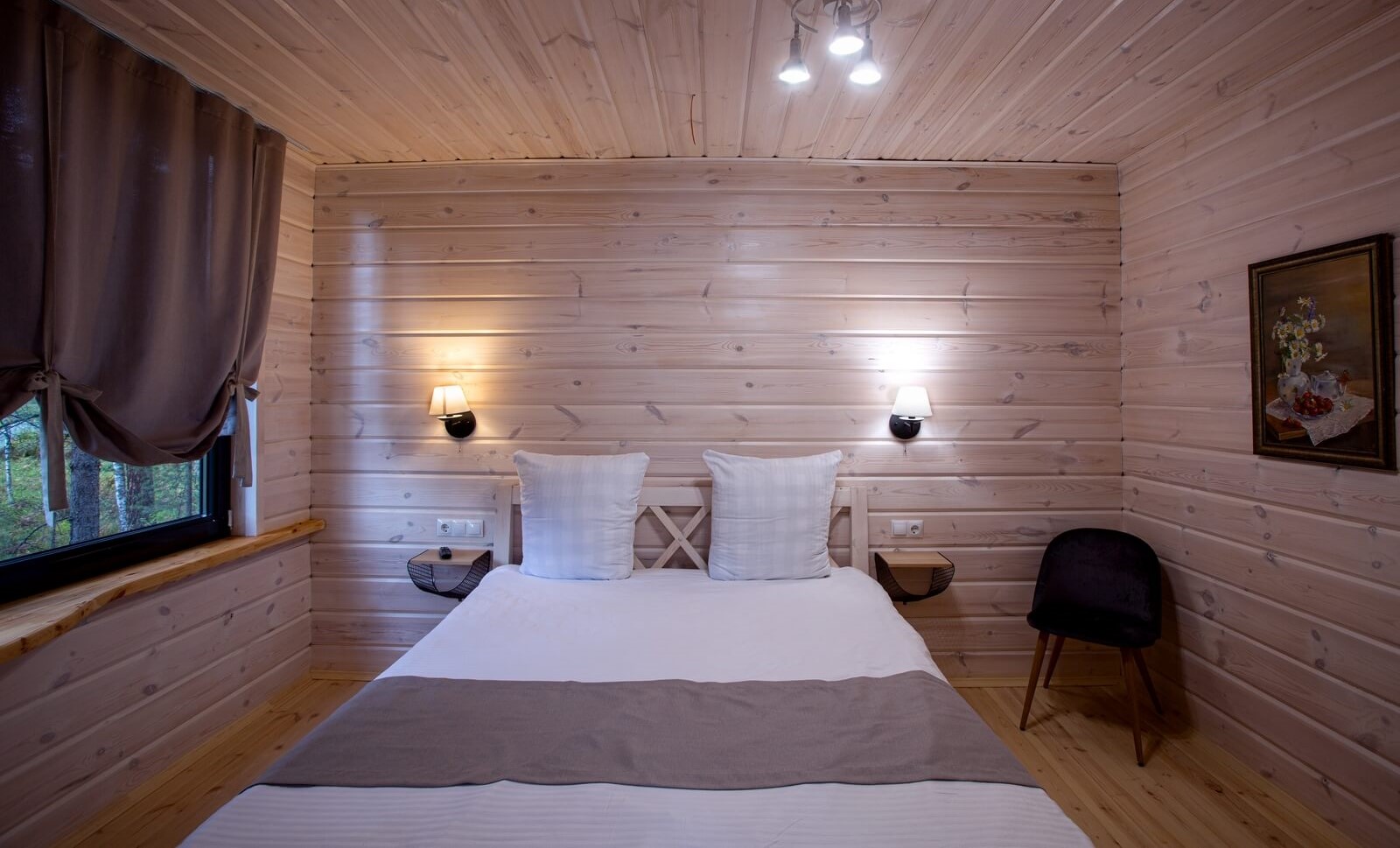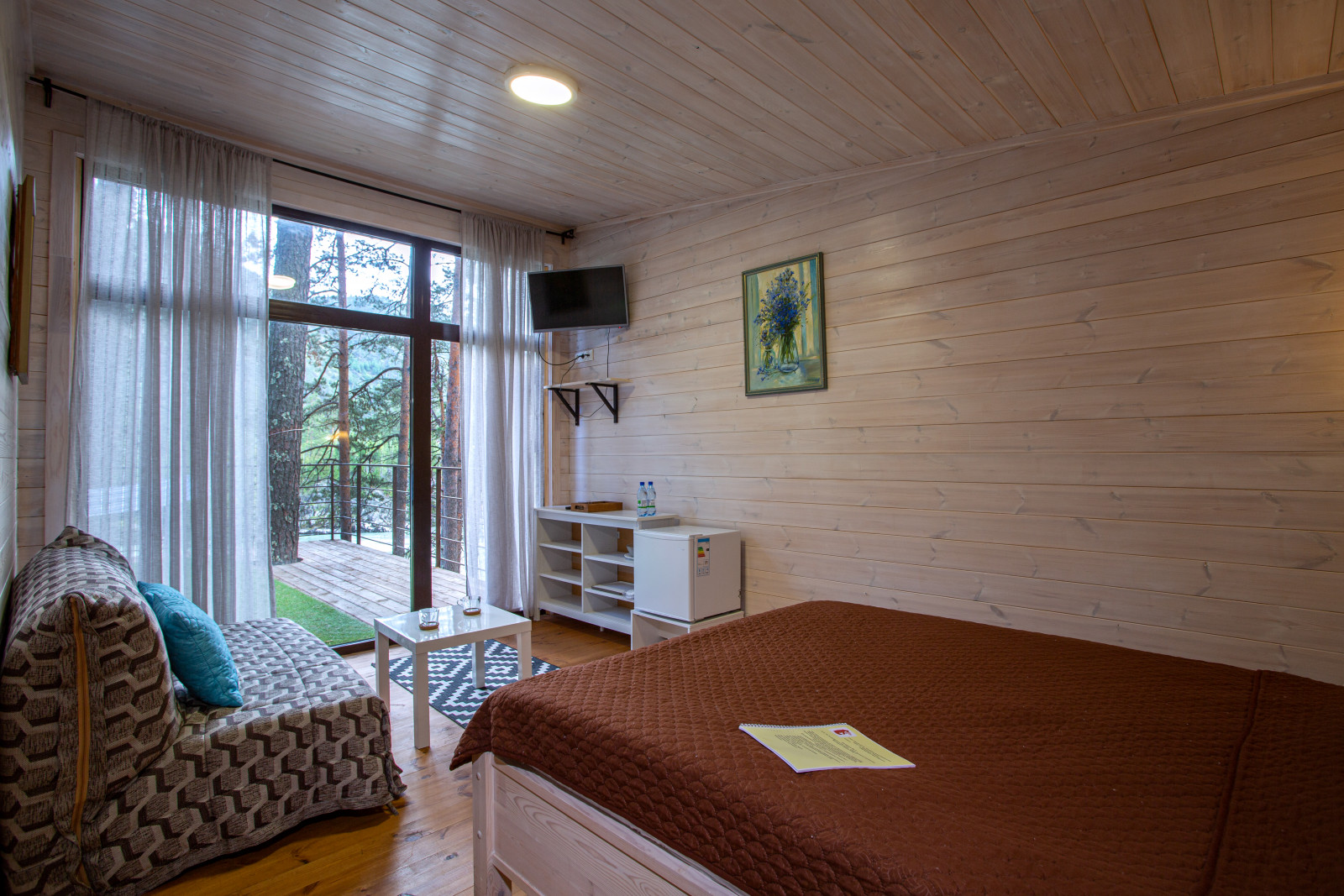 | Бунгало 2-местный (вид на лес) | 26 кв.м. | 2 чел. | Балкон (с мебелью), Мебель (диван раскладной, зеркало, кровать двуспальная, прикроватные тумбочки, с... | |