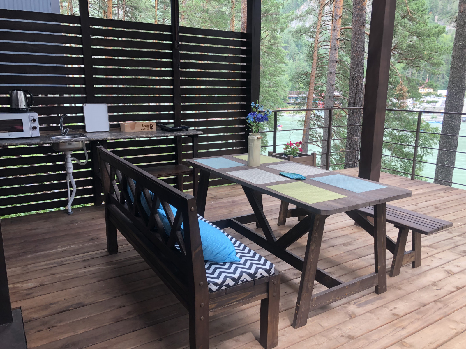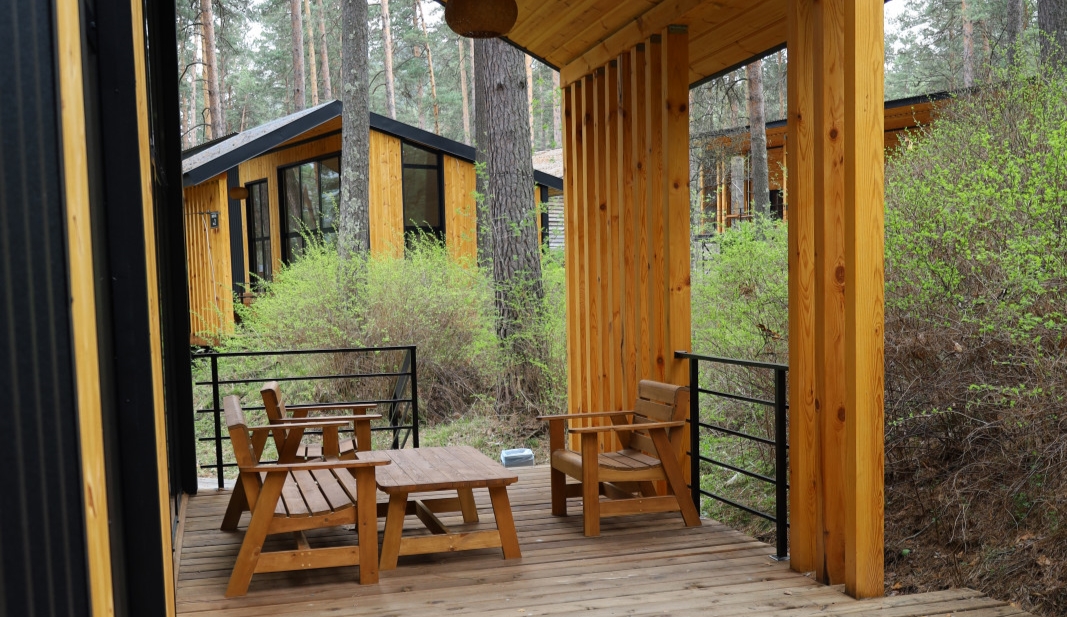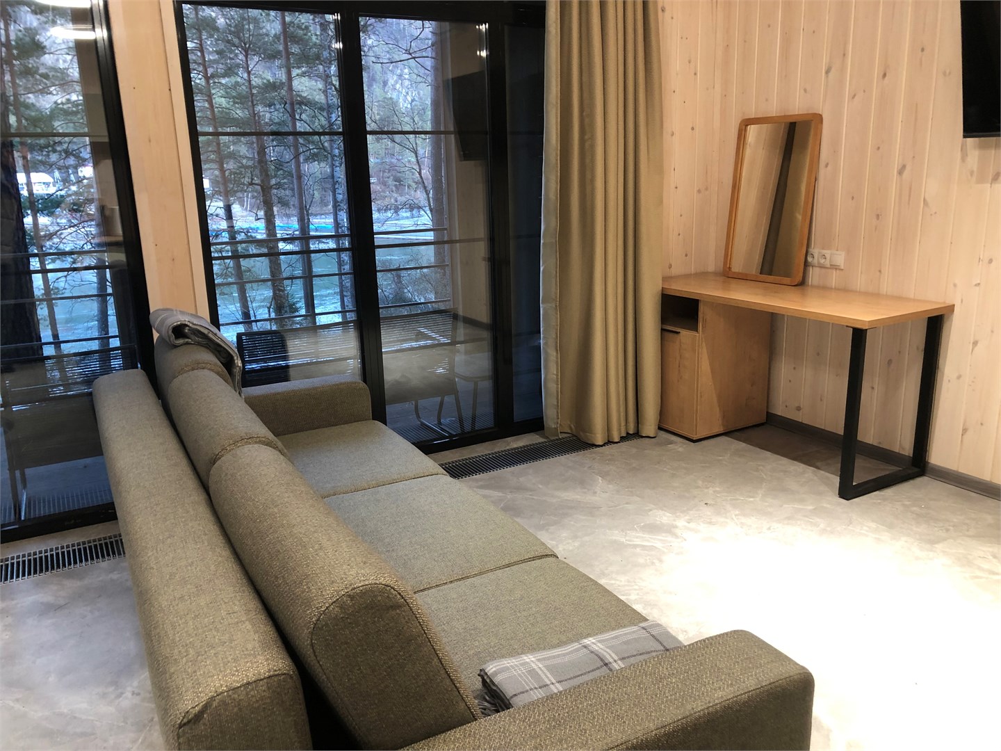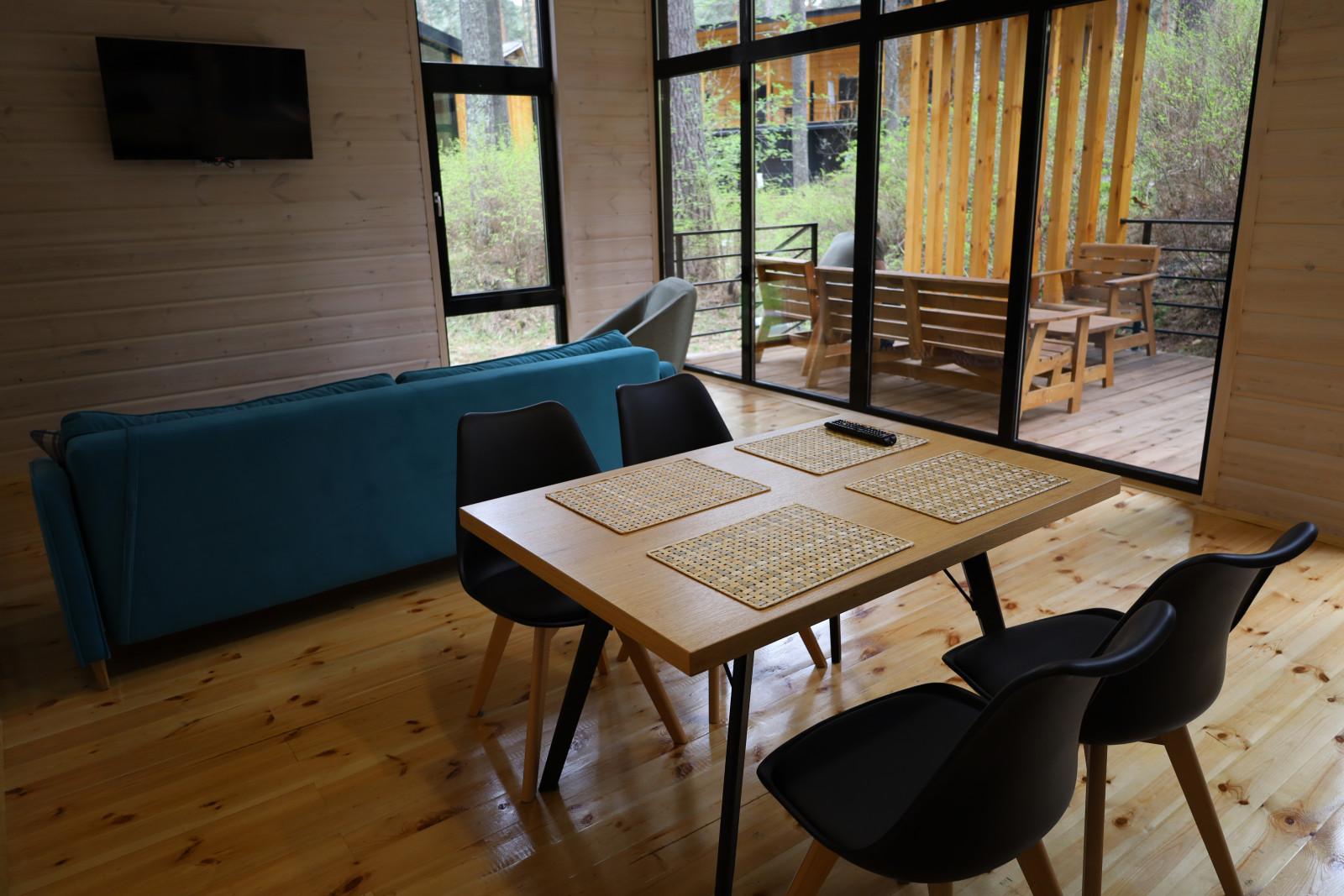 | Дом 2-местный Эко с террасой | 48 кв.м. | 2 чел. | Мебель (вешалка, диван, зеркало, кровать двуспальная, стол, стулья, шкаф), Оборудование (гладильная... |